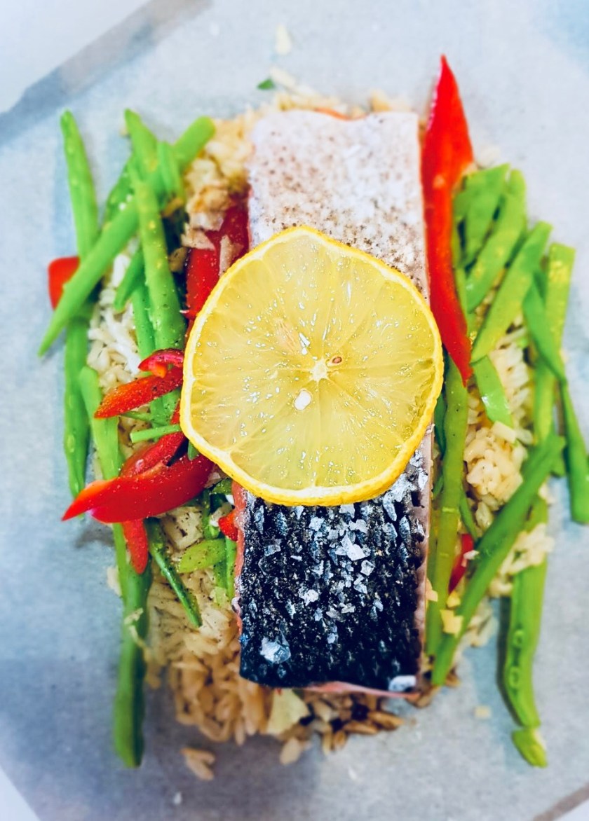 The verdict’s in – this is still my favourite salmon recipe of yours so far! (Though the caramalised salmon was VERY tasty, and my kitchen smelt amazing when I cooked the salmon in a coconut broth with vermicilli noodles – yum!) A tip for anyone else making it – about 10 minutes into cooking it I like to take it out of the oven and turn my little parcels over, that way the juices seep down into the salmon from the juicy rice, it really helps. Thanks Lo x
