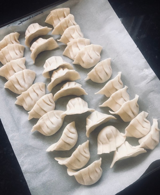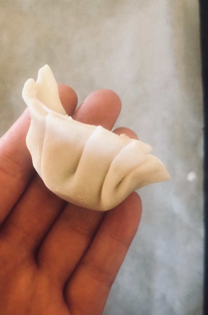 - Make sure you press the edges together very firmly and then place the dumpling on the tray and repeat till all finished.