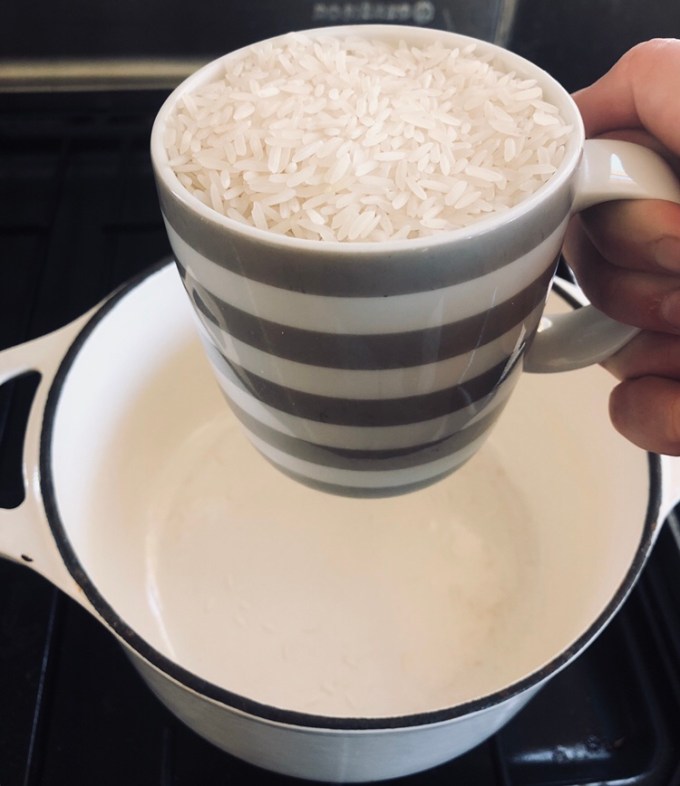 - To cook the perfect steamed rice that works every time – put 1 coffee mug full of jasmine rice in a heavy based saucepan and pour 1 1/2 cups of water from the same coffee mug in on top. With the lid on, bring to the boil. Once boiling, turn it back to a low simmer and let it cook for 8 minutes without lifting the lid or touching. It works every time.