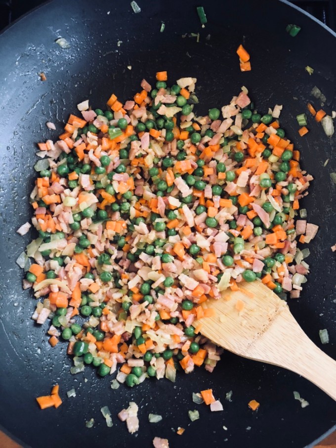 lo’s fried rice (this makes a large amount of fried rice – enough for 2 ravenous adults, 2 hungry kiddies + plenty of leftovers for the next day or if any unexpected guests pop in)