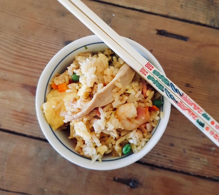 Soph and I used to go to great depths to try and ‘perfect’ the fried rice. I remember a trip to Eastwood shopping centre to track down some barbecued pork to add; I’ve bought steamed rice from a Chinese restaurant to see if it would taste better and served it up with store bought (and home made) prawn chips.