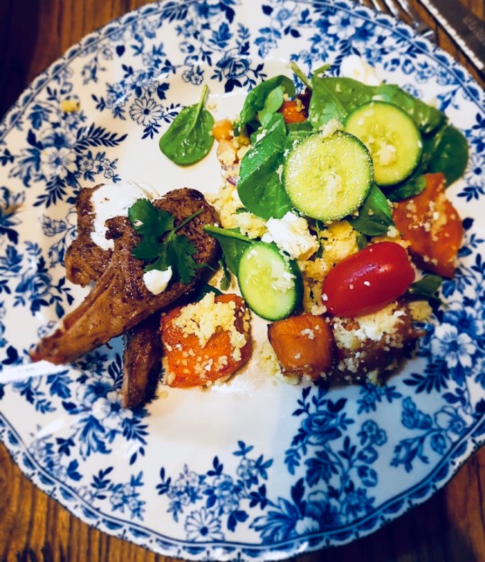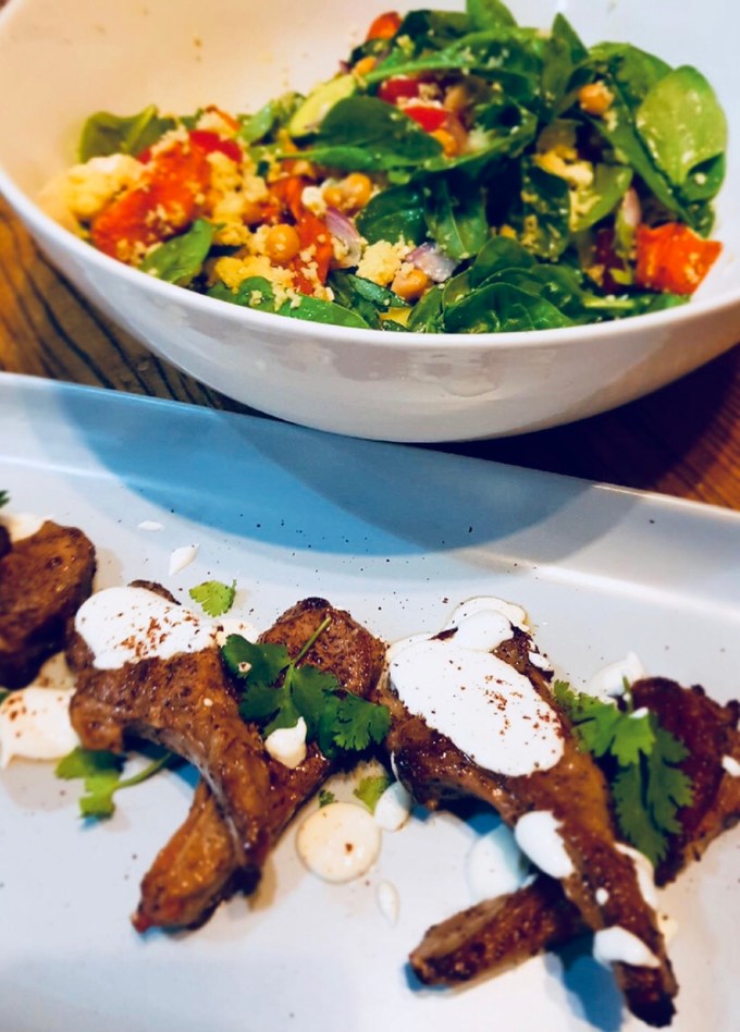 lamb cutlets w sumac + sweet potato cous cous (serves 2 adults)