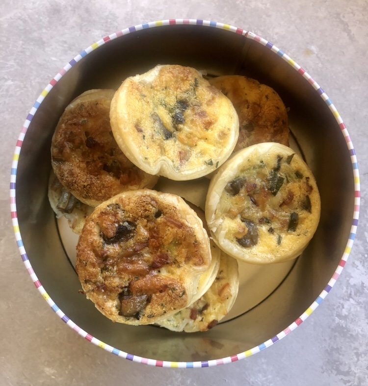 - Place the family sized quiche and mini quiches in to the oven and cook for approximately 30 minutes or until they are nicely browned.