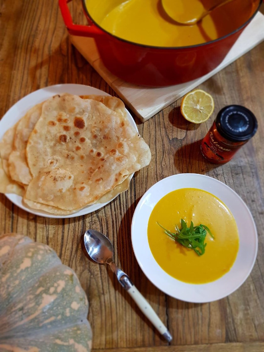 Talk about the perfect winter warmer dish and a terrific meat free Monday meal. Although I’ve made this soup loads of times; tried and tested – I made roti bread for the first time tonight which I’ve been wanting to do forever. I’ve been wanting to make it ever since I saw it on a Rick Stein cooking show once (I’ve also become addicted to the roti at Thaigga Thai in Wagga).