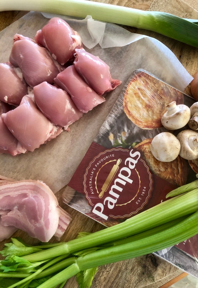 I like the addition of the bacon and feel that chicken thigh fillets tend to lend themselves to slow cooking better than chicken breast. Unlike my girls, I love mushrooms in everything and the teaspoon of Dijon mustard gives it a little flavour kick. I won’t be offended if you smother it in tomato sauce either. What’s a pie without sauce anyway?