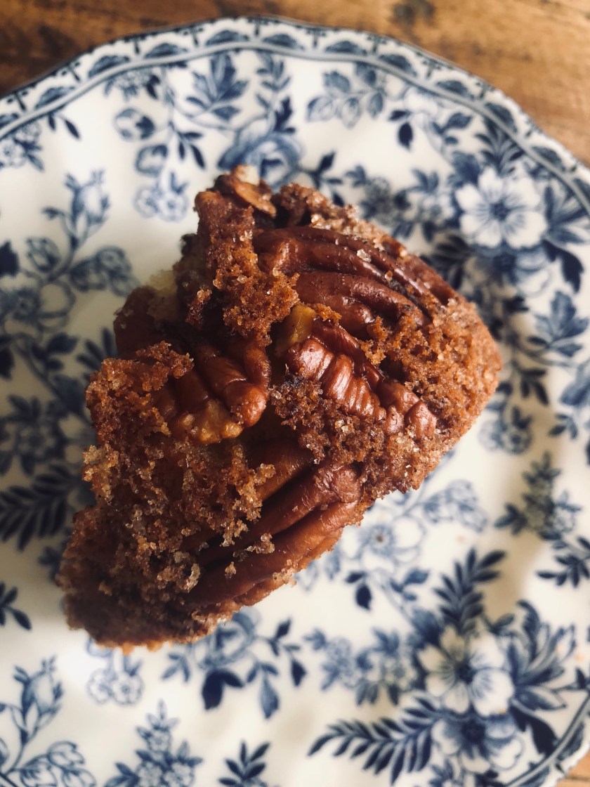 By far one of my favourite cakes, it’s been loved by the Thomas family for as long as I can remember. Terrific to enjoy with a hot cuppa, it’s deliciously sweet and comforting; the best thing to have in the house when you have people coming to stay. The cinnamon in it is really lovely and I love the crunch that the pecans bring. A special recipe that’ll be loved for many more years to come.