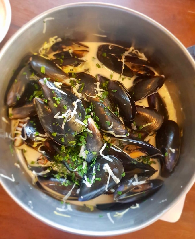 We cooked up a bit of a seafood feast last night whilst on holidays in Mollymook – Louey made her famous mussel dish whereas I threw together a prawn and salmon linguine (which also went down a treat). I ended up pouring some of the mussel sauce over the pasta and gosh did it give it an amazingly strong seafood-ey hit! {Pasta recipe being posted tomorrow – FYI}.Now why would you want to eat out?!