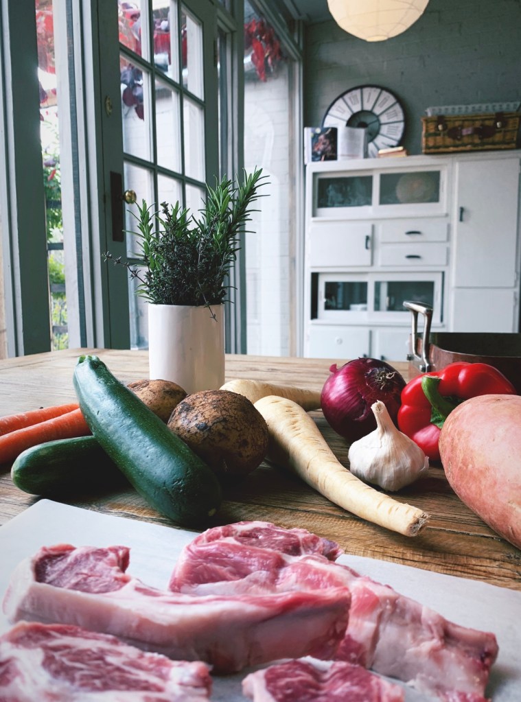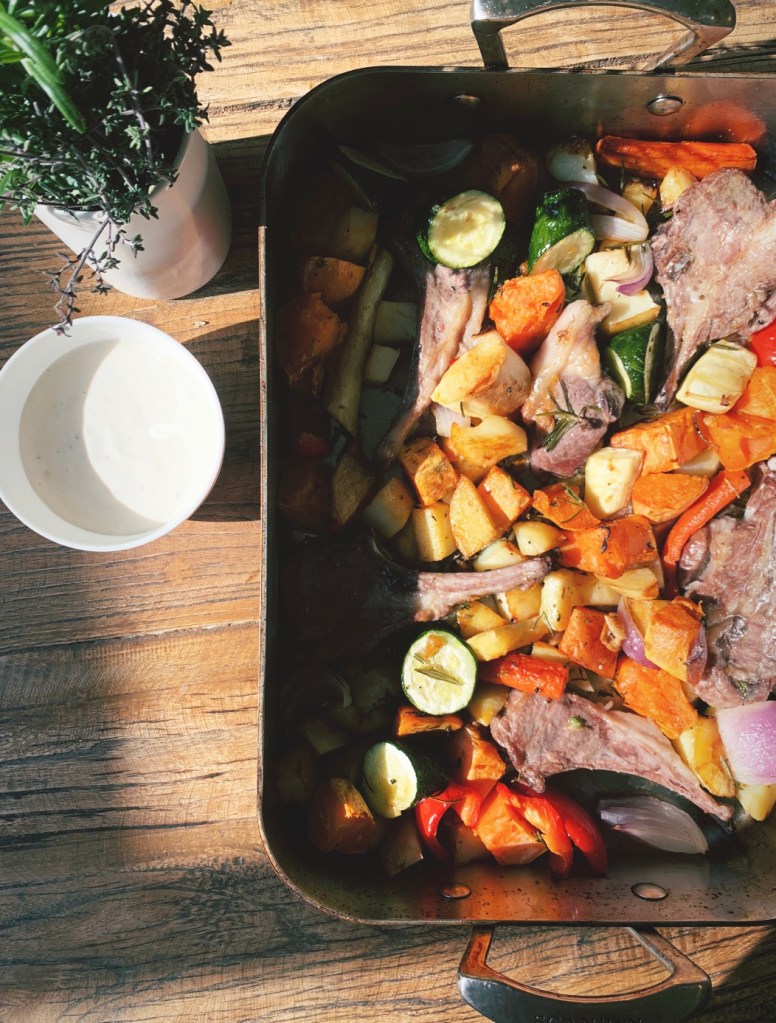 Introducing my fabulously easy and impressive ‘lamb and veggie tray bake’. Using loads of seasonal winter vege, the beauty of this dish is that it’s so easily adaptable. Make it for 2 people or 10 and you can use lamb cutlets, pork chops, chicken breast or even salmon fillets. So many different vege combo’s work too; think everything from zucchini to asparagus, Jerusalem artichoke to sweet potato, squash to parsnip.