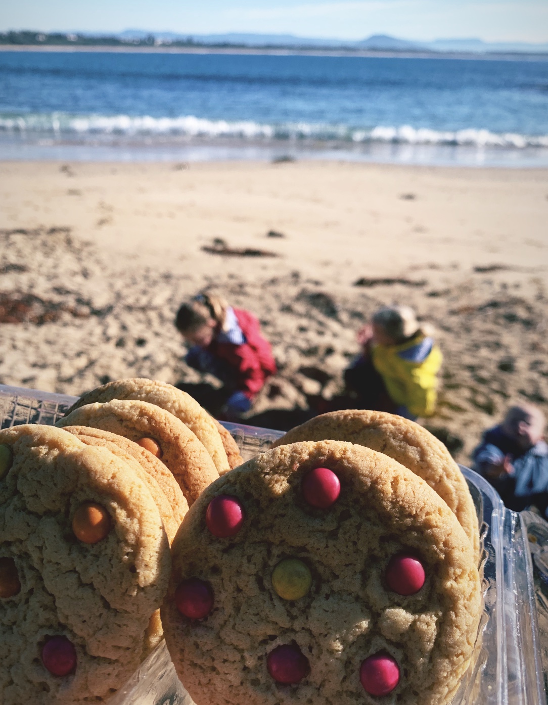 Winter school holidays and what better time to whip up a batch of these Smartie cookies. We’re lucky enough to be spending them at the beach; filled with lots of walks, park dates, cousin catch ups, ice cream cones and loads of beach time.