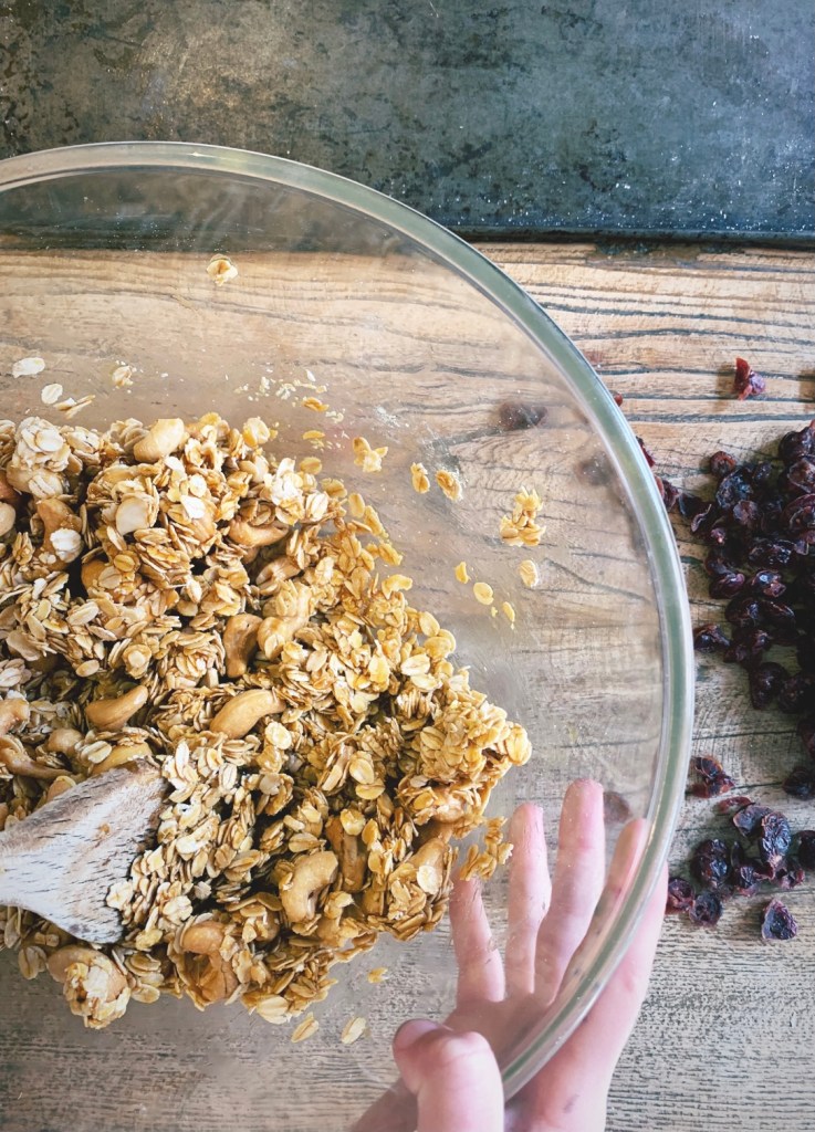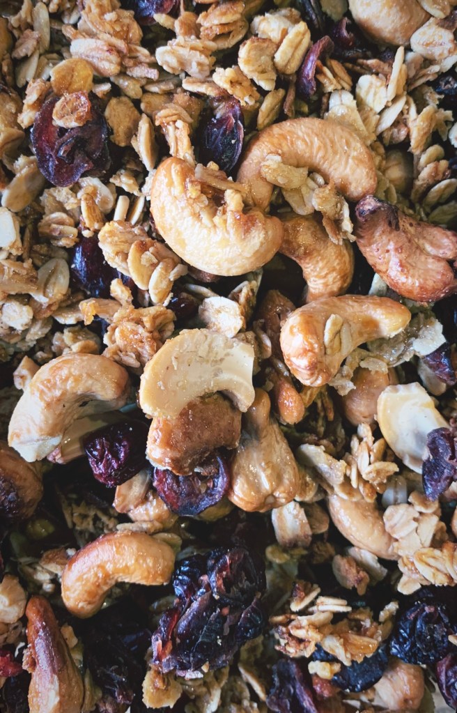 As with most of my recipes, you can throw a bit of this or that in depending on what you’ve got in the pantry. No cashews? No worries. Throw in almonds instead. No peanut oil? Use vegetable. No dried cranberries? Have you got sultanas? You get the gist. A couple of spoonfuls of this, thrown together with a dollop of natural yoghurt, a few berries and a splash of milk is just heaven. Such a good way to start the day.