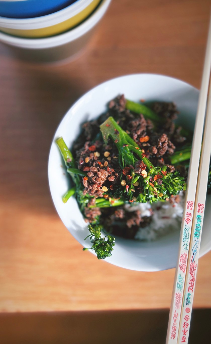 This stir fry is fast and tasty, it’s unpretentious and made with very few ingredients. Perfect for the whole family, it’s affordable and is another clever way of using beef mince (that isn’t spaghetti bol). Use any type of veggies you like too. Throw in carrots or capsicum, snow peas or baby corn. Whatever you want. And serve with chilli flakes, chilli sauce or fresh chilli too if you like.