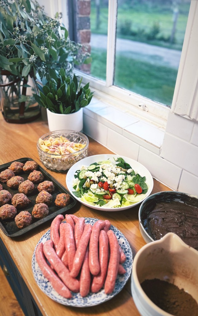 Nee and Pop came round for dinner last night and we sat down to a humble meal of some barbecued snags and homemade rissoles, with the kids’ favourite – creamy bacon pasta and a simple green salad. Finishing dinner off with this choccie pud really was the icing on the cake.