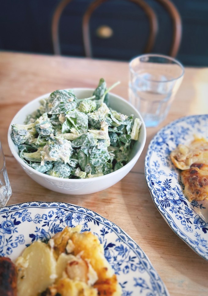 Five years ago now we were invited to dinner at the Scott’s place, a family with kids in the same class as our girls. I remember standing around their beautiful kitchen enjoying a glass of wine whilst watching Bel chop up some raw broccoli. She then proceeded to throw it into a big bowl, covering it with a white sloppy sauce before giving it a good mix and then carrying it to the table.