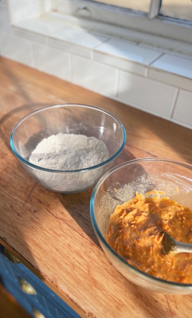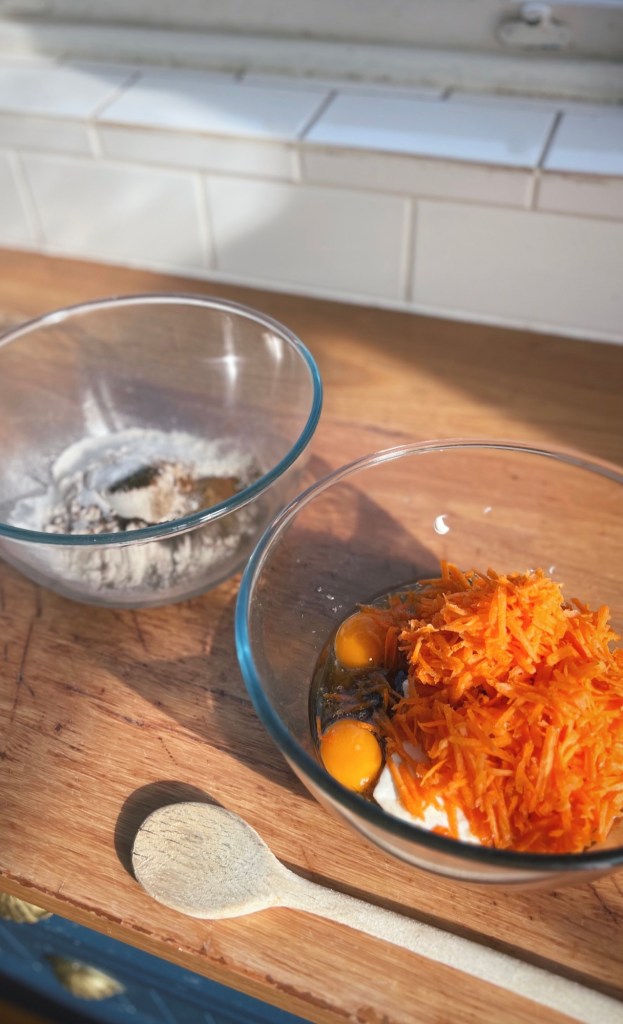 You can whip this up in minutes and apart from needing a grater, you don’t need any fancy mixing equipment here as it’s all done with a trusty wooden spoon. A perfect recipe for those of you that happen to have keen little helpers floating around these school holidays.