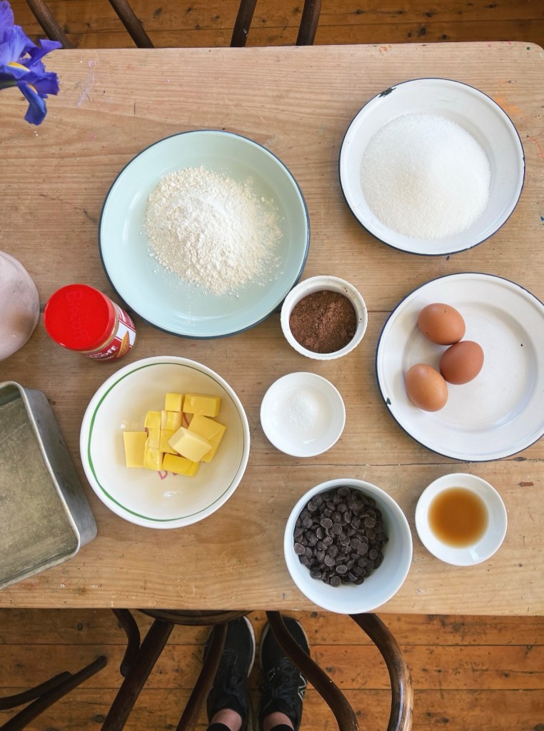 - Preheat the oven to 170 degrees (fan forced) and grease and line a 20 cm square cake tin with baking paper.